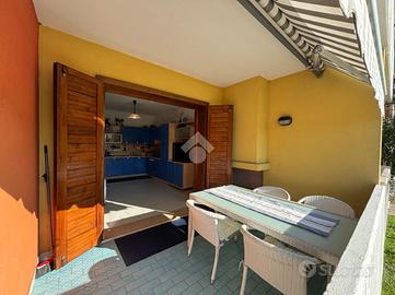 L'appartamento dispone di un patio all'ingresso, ideale per pranzare all'aperto e di un un terrazzino sul retro, perfetto per i momenti di relax.