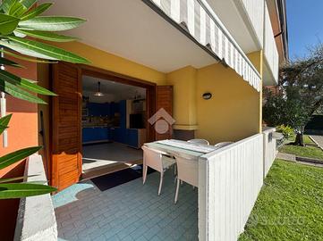 LAZISE - In residence con piscina comodo al centro di Lazise e raggiungibile a piedi in pochi minuti, offriamo in vendita un appartamento trilocale al piano terra composto da soggiorno con angolo cottura, camera da letto matrimoniale, cameretta e bagno.