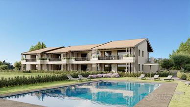 A pochi minuti a piedi dal centro e dal lungolago, nel comune di Lazise, sta per essere realizzata la residenza 'La Madonnina', un elegante residence di 20 unità abitative con ampi spazi esterni e grande parco condominiale con piscina a sfioro di ampie dimensioni. Gli appartamenti sono dotati tutti di ampia zona living con angolo cottura e ampie vetrate, due o tre camere da letto e due bagni. Gli appartamenti al piano terra offriranno tutti un ampio giardino privato, ideale per chi cerca uno spazio esterno da vivere in tranquillità. Gli appartamenti al piano primo godranno di ampie terrazze di oltre 35 mq con uno stupendo affaccio sul lago di Garda. Il livello signorile di queste abitazioni si riflette nelle finiture di pregio e nei dettagli curati, che conferiscono un'atmosfera accogliente e moderna. L'edificio sarà costruito secondo lo standard energetico di classe A4. Un concetto energetico sofisticato con una pompa di calore ad aria altamente efficiente e una costruzione sostenibile che assicurano un ambiente di vita sano. Il basso consumo energetico dell'edificio è garantito dall'involucro edilizio coibentato, dal sistema di isolamento termico, dai serramenti con triplo vetro e dalle porte di ingresso termicamente certificate. La posizione strategica permette di godere della bellezza del territorio circostante, con la comodità di avere i principali servizi a breve distanza. Un'opportunità unica per chi desidera un'abitazione contemporanea in una delle zone più affascinanti del Lago di Garda.