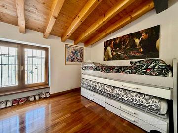MERAVIGLIOSA MANSARDA IN TIPICO RUSTICO NEL CUORE DEL BORGO CARATTERISTICO DI COLÀ DI LAZISE Proponiamo in vendita nel centro storico di Colà di Lazise, inserita in un rustico finemente ristrutturato nel 2004, questa mansarda disposta su unico livello al piano secondo e ultimo. Alla proprietà si accede direttamente dal piano terra tramite un ingresso indipendente, dove troviamo anche un comodo ripostiglio per biciclette e disimpegno; salendo la scala privata, rivestita in marmo Rosso Verona, si accede all'abitazione caratterizzata dai soffitti con travi a vista e pavimenti in parquet su tutta la casa, eccetto i bagni. Entrando troviamo la zona giorno open space, con angolo cottura e piccola zona studio; la luminosità è garantita dalla presenza di finestre e non di velux. Adiacente alla zona giorno si trova il primo bagno, finestrato con velux e dotato di doccia e lavatrice; la zona notte è composta da due camere da letto, una matrimoniale e una singola, e il secondo bagno finestrato con doccia. Al piano strada, davanti all'entrata dell'abitazione, si trova un posto auto ad uso esclusivo. L'immobile si presenta in perfetto stato ed è abitabile da subito, adatto sia come casa vacanze che per locazione da investimento. E' dotato di riscaldamento autonomo a metano e impianto di aria condizionata in ogni stanza. N.B. È bene ricordare che, nonostante sia stata posta la massima cura per garantire la precisione e la correttezza dei contenuti di questa presentazione, essa non ha alcun valore in sede contrattuale.