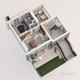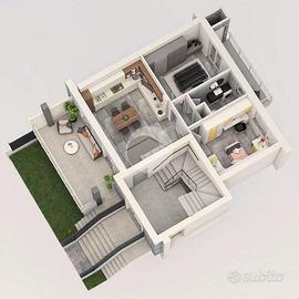 La costruzione rispetterà tutte le normative sul risparmio energetico e acustico, includendo pannelli fotovoltaici per la produzione di energia elettrica e riscaldamento a pavimento in ogni ambiente.