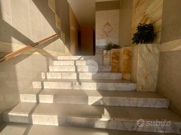 L'ingresso, accessibile dal portoncino, distribuisce in modo funzionale i vari ambienti. La zona giorno è composta da un ampio tinello con cucinino finestrato, dal quale si accede al primo e lungo balcone con affaccio sul cortile. Le due camere da letto, entrambe dotate di balcone, risultano particolarmente luminose grazie alle porte finestre che favoriscono un'ottima illuminazione naturale. Completano la soluzione due ripostigli e due bagni, uno con doccia e l'altro con vasca.
