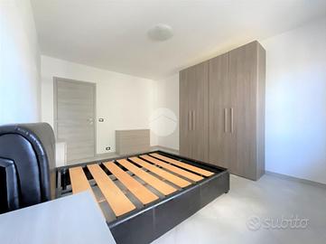 La zona notte comprende due camere da letto particolarmente luminose: la prima con finestra, la seconda con porta finestra e accesso al medesimo balcone collegato anche alla cucina. Il bagno, finestrato, è completo di sanitari, box doccia e predisposizione per la lavatrice.