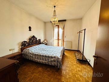 La zona notte si sviluppa con una spaziosa camera matrimoniale, dotata di uscita sul balcone, una cameretta ben illuminata grazie alla finestra e un bagno finestrato, completo sia di vasca che di doccia.