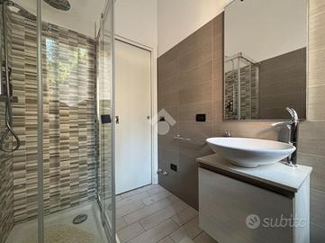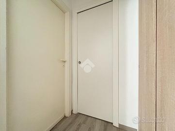 L'entrata affaccia sulla luminosa cucina-soggiorno open space dalla quale si ha accesso ad un balcone.