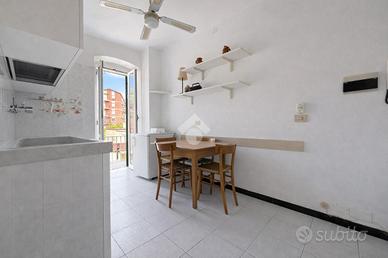 San Terenzo - Nel cuore del borgo, a pochi passi dal mare, proponiamo bilocale con balcone. L'immobile si trova al secondo piano comodo di una palazzina storica, recentemente restaurata nelle parti comuni. L'appartamento è composto da una zona giorno con cucina-soggiorno e accesso al balconcino con affaccio sul verde, oltre al bagno. Sul medesimo piano, ma separata dalla scala condominiale, troviamo la camera da letto matrimoniale. Completa la proprietà un comodo ripostiglio. Il riscaldamento autonomo e non ci sono spese condominiali.