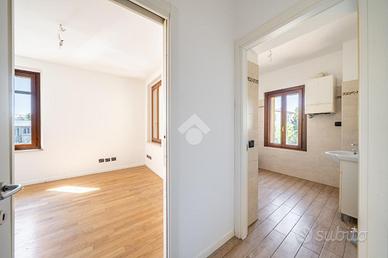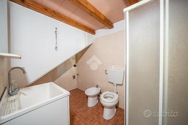 Al piano d'ingresso troviamo un bagno/lavanderia, ideale come servizio di appoggio o zona utility.