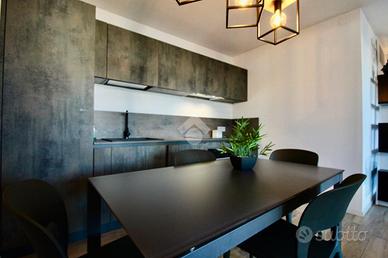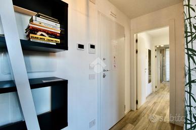 Arrivati al piano quarto mediante l'ascensore o il vano scale, accediamo all'unità immobiliare oggetto di vendita mediante un portoncino blindato, trovandoci nella zona giorno, finemente arredata e illuminata.
