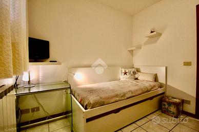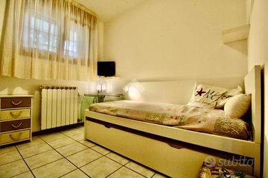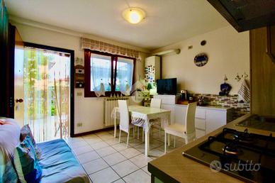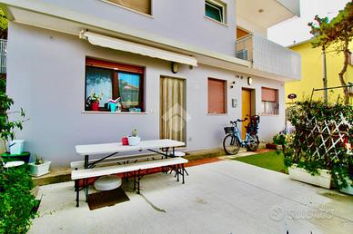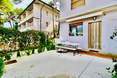 Lignano Sabbiadoro, situata a circa metà strada tra Venezia e Trieste, è una delle più note località balneari dell'alto Adriatico, conta poco meno di 7000 residenti e dispone di un'ampia spiaggia di circa 8 chilometri. Il paese si distingue in tre principali località: Sabbiadoro, Pineta e Riviera e troviamo svariate tipologie edilizie, dalla villa singola all'appartamento in condominio. Nella zona di Pineta, troviamo un immobile oggetto di vendita, sviluppato al piano terra di un fabbricato denominato CONDOMINIO VANESSA. L'appartamento, ad accesso indipendente, è dotato di uno scoperto ad uso esclusivo, con tavoli, panche e tenda parasole. Dal cortile privato accediamo a una porta blindata dalla quale si entra all'appartamento dove troviamo la zona giorno/cottura con tavolo per quattro persone, cucina a muro e divano, attraverso il disimpegno, sulla sinistra, accediamo al bagno finestrato compreso di tutti i sanitari box doccia e lavatrice. In ultimo troviamo la zona notte che ospita due camere da letto matrimoniali con armadi a muro. L'immobile e' stato ristrutturato recentemente, dotato di riscaldamento autonomo con caldaia, è in ottimo stato e da subito abitabile. Appartamento ideale per coloro che vogliono stare vicino al mare e hai servizi, e lontani dalla movida estiva.