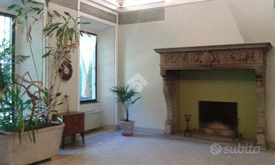 Abitazione e/o ufficio all'interno di una dimora storica risalente al XVI secolo, di proprietà all'epoca della nobile famiglia Castiglioni, dalla quale prenderà poi il nome. La villa è una delle più antiche e nobili dimore del comune di Limbiate. La porzione in vendita è posta al piano rialzato della villa, la bellezza degli ambienti risalta non appena si mette piede all'interno dei saloni con soffitti a volta decorati con altezze di cinque metri , oltre ai pavimenti in seminato veneziano con eleganti disegni a mosaico. In particolare nel grande salone 'di caccia' è presente un prezioso camino in pietra serena raffigurante lo stemma della famiglia Castiglioni Olona con eleganti intagli di scene di caccia con il falcone. Nel salone a fianco cattura l'attenzione una imponente stufa in maiolica d'epoca settecentesca con elaborate decorazioni, proveniente pare dall'Alto Adige. Nel dettaglio gli ambienti sono quattro, oltre al bagno. Attualmente il resto della dimora storica è adibita ad uffici commerciali , studi professionali e abitazioni. La vendita comprende anche quattro posti auto, due nel cortile principale antistante e due nel retro della villa. La soluzione ha la possibilità di usufruire di un doppio ingresso. Attualmente i locali sono adibiti ad uso ufficio ma è possibile la trasformazione in abitazione. La soluzione è subito disponibile. Il tetto dell'edificio è nuovo, in fase attuale d'ultimazione. Anche la via Mazzini dove si trova l'elegante cancello in ferro battuto che conduce all'ingresso della villa , sono in corso da diversi mesi , lavori di riqualificazione della strada e dell'ambiente circostante.