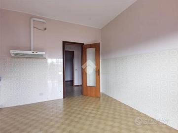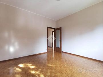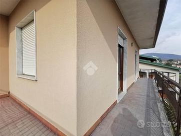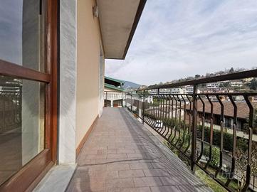 La zona giorno offre una sala spaziosa e luminosa, dotata di camino e di balcone con vista panoramica. Il balcone è collegato alla cucina abitabile di ampie e generose dimensioni. La zona notte dispone di due camere matrimoniali, una delle quali con balcone, e un ampio bagno.