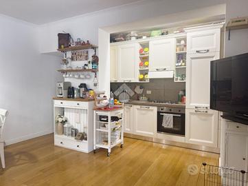 La zona giorno si sviluppa in un ambiente open space che unisce soggiorno e cucina, creando uno spazio conviviale e versatile.