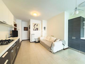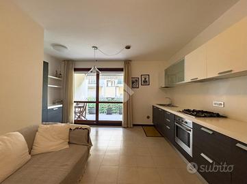La zona giorno composta da un luminoso soggiorno con angolo cottura, si apre su un ampio terrazzo, ideale per momenti di relax all'aperto, mentre la zona notte è servita da un disimpegno che collega una cameretta, una camera matrimoniale e un bagno con balcone.