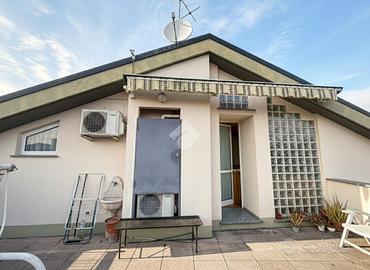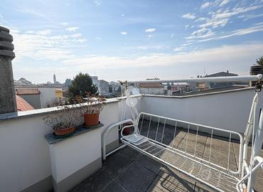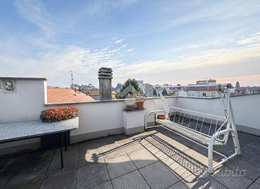 Situato nelle immediate vicinanze del centro di Lissone, a pochi minuti a piedi dai principali servizi, proponiamo appartamento di 139 mq in buono stato di manutenzione, posto al primo piano di una palazzina priva di ascensore, ma dotata di accesso per persone con disabilità. L'immobile si apre su un ingresso con porta blindata e citofono, ed è predisposto per l'aria condizionata. La cucina di dimensioni contenute è affacciata su un soggiorno ampio e molto luminoso, con esposizione est. Un disimpegno arredato con mobili su misura conduce alla zona notte, composta da bagno finestrato e camera da letto, anch'essa predisposta per l'aria condizionata. Entrambi gli ambienti godono di balcone e ottima esposizione a est. Il riscaldamento è autonomo con radiatori. Al piano superiore si trova un secondo piano abitabile, arricchito da arredi su misura, con esposizione sud-ovest, predisposizione per l'aria condizionata e terrazzo attrezzato con tenda da sole. Il piano è completato da un bagno finestrato. La proprietà comprende inoltre una cantina finestrata di circa 25 mq e un box auto con accesso diretto dalla corte adiacente.