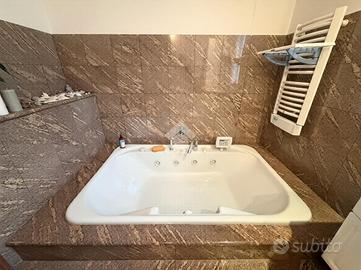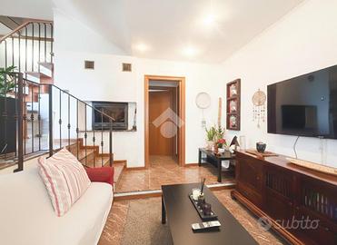 In un contesto intimo e curato, frutto di un recupero edilizio, con accessi pedonale e carraio elettrici, proponiamo un grazioso appartamento su due livelli con terrazzo sfruttabile, ideale per chi cerca privacy e comfort. L'abitazione, posta al primo piano, accoglie con un luminoso soggiorno doppio, impreziosito da un termocamino a legna con ventilazione automatica, perfetto per creare un'atmosfera calda e accogliente. La cucina abitabile è separata da una raffinata parete in vetro. Nel disimpegno trovano spazio due comodi ripostigli, uno per la legna e l'altro con al suo interno la caldaia. Il piano è completato da un bagno finestrato ed elegante con vasca idromassaggio, doppio lavabo e scaldasalviette. Salendo al piano superiore si sviluppa la zona notte, con due camere da letto, una pratica lavanderia e da altri due locali, attualmente adibiti a studio o camerette. L'immobile è dotato di riscaldamento autonomo, aria condizionata nella zona giorno e pavimentazione in marmo. Infissi in legno con doppio vetro, inferriate e Velux motorizzati al piano superiore dotati di sensore pioggia e vento. Box singolo incluso soppalcato e cantina. Possibilità di arredo parziale. Una soluzione accogliente, riservata e pronta da vivere.