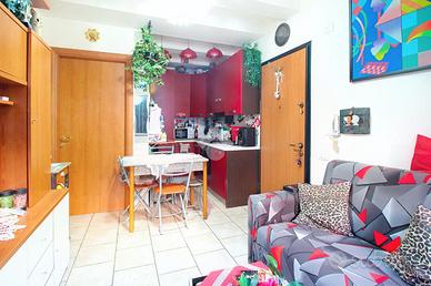 L'ingresso si apre sulla zona giorno, composta dal soggiorno con angolo cottura. Un comodo corridoio conduce alla zona notte, che comprende due camere da letto: una matrimoniale e una singola.