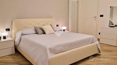 La soluzione è al quinto piano con ascensore e si compone di una grandissima zona giorno con cucina a vista con impianto ad induzione e divano letto, a seguire troviamo la zona notte costituita da due camere da letto, una matrimoniale ed una con letto singolo e scrivania.