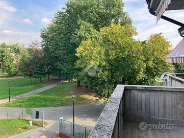 La zona giorno è composta da un ingresso direttamente sul soggiorno che affaccia sul balcone, con vista aperta su un parco e da una spaziosa e comoda cucina abitabile.