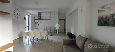 La zona notte si compone di un bagno moderno, rifinito con materiali contemporanei e dotato di ampia doccia, camera matrimoniale con balcone privato e cabina armadio, seconda camera ideale come cameretta, studio o stanza ospiti.