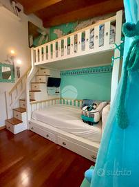Tramite un disimpegno si accede alla zona notte dove vi è un bagno, una camera da letto doppia, una camera da letto matrimoniale con annesso il balcone ed un ulteriore bagno adibito a lavanderia.