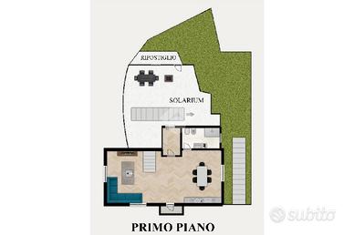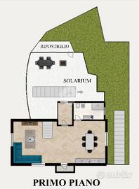 A completamento troviamo un box auto quadruplo di recente costruzione, ripostiglio, solarium, giardino pertinenziale di grande metratura oltre a posto auto esterno.