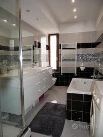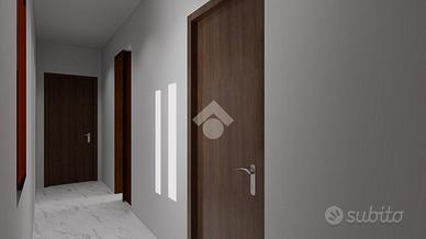 Il corridoio conduce alle due camere da letto ed al bagno, spazioso e moderno, completo di doppio lavabo, doccia e vasca a seduta, oltre che wc e bidet sospesi.