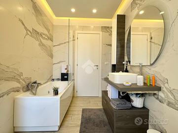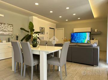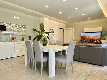 Appartamento moderno in classe energetica A con box e posto auto coperto - Lusciano, Via Alessandro Volta In una zona residenziale tranquilla e ben servita di Lusciano, proponiamo in vendita un elegante appartamento di recente costruzione (anno 2018), situato al primo piano alto di un moderno stabile dotato di ascensore. L'immobile, in classe energetica A, si distingue per finiture di pregio e per un'eccellente efficienza energetica. Si compone di: * ingresso in ampio salone con cucina a vista, caratterizzato da una splendida luminosità grazie al doppio punto luce; * due camere da letto spaziose; * due bagni, di cui uno con vasca e uno con doccia. Dotazioni extra che rendono l'appartamento ancora più confortevole: * tre climatizzatori; * impianto di allarme volumetrico e perimetrale; * sistema di videosorveglianza esterna; * eleganti controsoffittature in tutta la casa; * tende da sole motorizzate con chiusura automatica anti-vento, ideali per garantire comfort e sicurezza in ogni stagione. * infissi con ante a ribalta in tutta la casaCompletano la proprietà un box auto con predisposizione per serranda automatica e un posto auto coperto, entrambi di proprietà esclusiva. Soluzione ideale per chi cerca una casa moderna, sicura e pronta da abitare, in una posizione strategica e riservata.