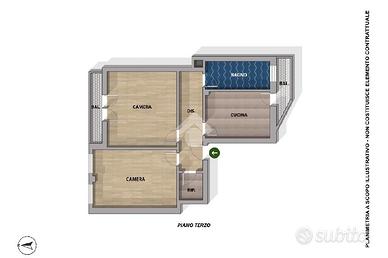 La zona notte è composta da due camere da letto, entrambe regolari e facilmente arredabili, adatte sia come camere matrimoniali sia come camera e studio, garantendo flessibilità d'uso.