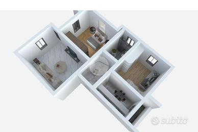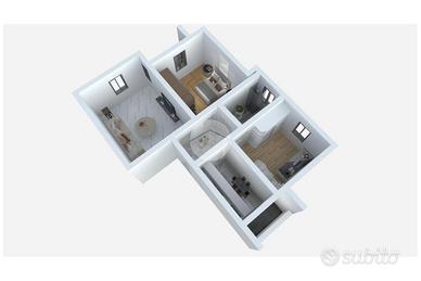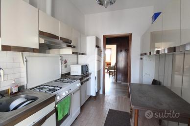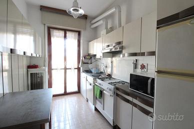 L'ingresso è nella zona giorno composta dalla cucina abitabile con accesso al primo balcone con esposizione verso nord e dal luminoso soggiorno con affaccio sul secondo balcone esposto a sud.