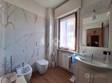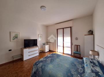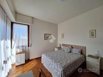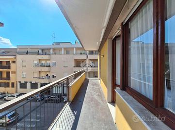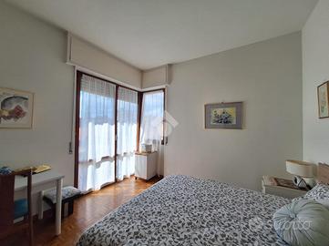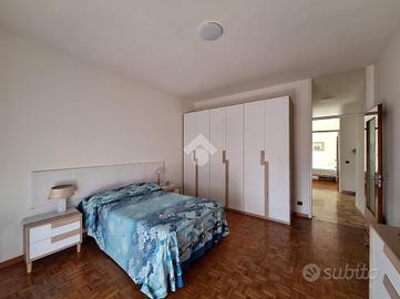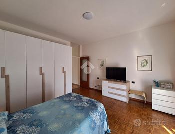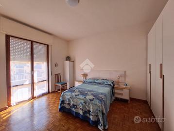 Tramite il corridoio si raggiunge la zona notte, dove troviamo la camera matrimoniale con affaccio su medesimo terrazzino della zona giorno, bagno accessoriato da box doccia e ampia cameretta con affaccio su balconcino con esposizione ad ovest con vista sul centro città.