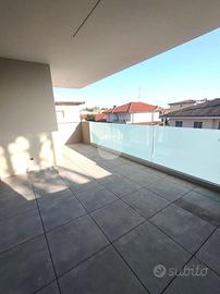Residenza Barbara, un contesto di nuova costruzione in piccola palazzina di sole 11 unità abitative realizzate con finiture di pregio e tecnologie di ultima generazione. Consegna prevista entro settembre 2026 Gli appartamenti sono caratterizzati da ampi spazi interni, grandi terrazzi sfruttabili, doppi servizi, classe energetica A4, sistema d' isolamento acustico tra le varie soluzioni, impianto fotovoltaico, impianto di riscaldamento in pompa di calore a pavimento, raffrescamento con pompa di calore sistema ventilazione meccanica controllata per il ricircolo costante dell'aria e ascensore dal piano box. Possibilità di acquistare box singoli o doppi, con prezzo a parte. L'iniziativa si trova in una zona tranquilla e residenziale, a pochi minuti a piedi dalla stazione ferroviaria Milano - Torino, ben collegata con la Strada Statale 336 che permette di raggiungere l' Aeroporto internazionale di Malpensa, comoda per immettersi nell'autostrada A4, per raggiungere il centro commerciale Ideapiù e per tutti i principali servizi della città di Magenta come supermercati, scuole di ogni ordine e grado, strutture sportive per adulti e bambini quali campi da calcio e palestre. Rifiniture: porta blindata, pavimentazione di tutti i locali abitabili in ceramica o similari, serramenti pvc in doppio vetro ad alta efficienza termica, tapparelle elettriche, predisposizione domotica, porte interne di tutti gli appartamenti in legno, impianto centralizzato di ricezione televisiva e antenna satellitare con predisposizione alla ricezione digitale per ogni singolo alloggio, videocitofono, predisposizione impianto allarme. Appartamento di tre locali. L'ingresso avviene nella luminosa zona giorno open space con angolo cottura, caratterizzata da un'ampia vetrata che affaccia sul terrazzo di circa 25 mq. Tramite il disimpegno si raggiunge la zona notte composta dalla cameretta con affaccio sul terrazzo, dalla camera da letto con cabina armadio, dal primo bagno finestrato dotato di vas