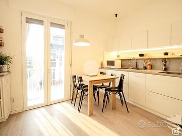 In zona centrale e comoda per tutti i principali servizi offerti dalla città di Magenta, appartamento completamente ristrutturato a nuovo ubicato al secondo piano di un contesto condominiale ben tenuto. L'ingresso avviene nel disimpegno che conduce alla zona giorno composta dalla cucina abitabile con affaccio sul primo balcone con esposizione a ovest e dal luminoso soggiorno con affaccio su un balcone distinto con esposizione a est. Tramite il secondo disimpegno si raggiunge la zona notte composta dalla camera da letto, dalla cameretta e dal bagno finestrato accessoriato dal box doccia. Completa la soluzione la cantina e il box auto Rifiniture: porta blindata, serramenti in pvc, impianto elettrico ed idraulico rifatti con certificazioni, pavimenti in marmo, predisposizione antifurto, predisposizione tapparelle elettriche.