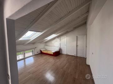 La luminosità e l'altezza dell'immobile, unite alla vista panoramica, lo rendono sicuramente unico ed accogliente per chi ama gli spazi ben illuminati e aperti. E' posto all'ultimo piano di un piccolo e tranquillo contesto, a due passi dal centro, il che può rappresentare un grande vantaggio, offrendo la comodità di avere negozi, servizi e attività a portata di mano senza dover affrontare il caos del traffico. La presenza di travi in legno a vista sbiancate conferisce sicuramente un tocco di eleganza e calore all'ambiente, rendendolo accogliente e ricco di carattere. L'ampio soggiorno e la cucina molto ampia e abitabile permettono di vivere l'appartamento in modo confortevole e creativo. Il terrazzo, da cui si accede attraverso la porta finestra del soggiorno, è un valore aggiunto in quanto permette di avere anche uno spazio esterno da sfruttare per momenti di relax. La disposizione delle camere da letto, con una principale dotata di doppia esposizione, è ideale per garantire privacy e comfort. Entrambe sono pavimentate in parquet. Il bagno è completo di con vasca, mentre la zona lavanderia/stireria offre un'ulteriore comodità, spesso apprezzato in un appartamento. Infine, la cantina e la disponibilità di un ampio parcheggio libero nelle vicinanze completano questo profilo già molto interessante, rendendo l'abitazione non solo bella, ma anche funzionale e pratica.
