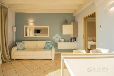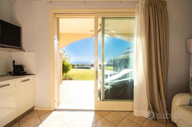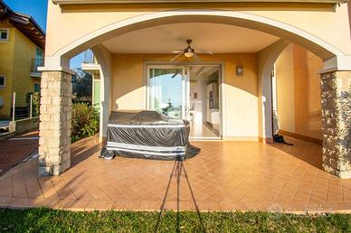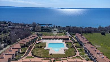 MANERBA - A pochi passi dal rinomato Porto di Dusano, proponiamo in vendita questo elegante trilocale al piano terra con giardino privato e vista panoramica sul lago.