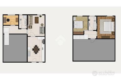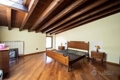 Salendo al secondo piano, troviamo una spaziosa camera matrimoniale, un secondo bagno e una stanza sottotetto che può essere trasformata in una ulteriore camera.
