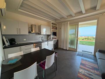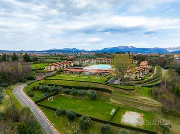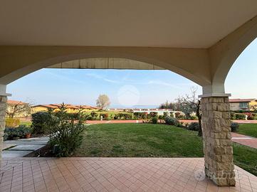 Manerba del Garda - Trilocale con vista lago mozzafiato A pochi passi dal prestigioso Porto di Dusano, proponiamo in vendita uno splendido trilocale al piano terra con giardino privato e meravigliosa vista lago centrale, inserito in un contesto esclusivo e di pregio. L'immobile si compone di un'ampia e luminosa zona living con cucina a vista, due camere da letto, di cui una matrimoniale con accesso al giardino e piacevole vista, e una camera singola di generose dimensioni con portafinestra. Completa la zona interna un ampio bagno finestrato con doccia. Il residence offre servizi esclusivi, tra cui una splendida piscina panoramica con vista lago, vero fiore all'occhiello del complesso, perfetta per momenti di relax immersi in un paesaggio unico. Presenti inoltre zona picnic, campo da beach volley, campo da calcio e servizio di custode. Completano la proprietà posto auto e garage di proprietà. Soluzione ideale sia come prima casa, grazie alle comode metrature e ai numerosi comfort, sia come seconda casa per chi desidera vivere o investire in una posizione invidiabile, a ridosso del Porto di Dusano, in un contesto elegante e ricercato