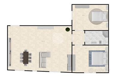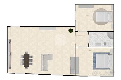L'appartamento si presenterà composto da: comoda zona giorno open space suddivisa in angolo cottura, zona pranzo e comodo angolo relax arredabile in base alle proprie esigenze.