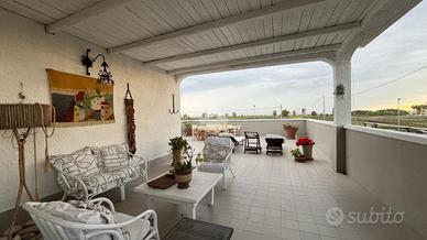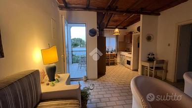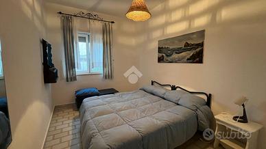 Immagina un appartamento in villa al piano primo che si trova a pochi passi dal mare , perfetta per chi desidera vivere in un'oasi di pace e relax. La proprietà è caratterizzata da un'ampia veranda esterna, ideale per trascorrere piacevoli momenti all'aria aperta, organizzare cene con amici o semplicemente rilassarsi ammirando il panorama circostante. La villa è servita da un rigoglioso giardino di pertinenza, ben curato e ricco di vegetazione mediterranea, che regala un senso di freschezza e tranquillità. Il giardino offre spazio sufficiente per giochi all'aperto, attività di giardinaggio o per creare un angolo dedicato al relax con lettini e ombrelloni. Gli interni dell'appartamento sono accoglienti e luminosi, grazie ai numerosi punti luce presenti. La disposizione degli spazi è studiata per offrire il massimo comfort, con una zona giorno aperta che include un comodo cucinino con un ampio soggiorno. La zona notte è accessibile tramite il corridoio e troviamo un'ampia camera da letto, cameretta e bagno. La vicinanza al mare rappresenta uno dei punti di forza di questa villa, permettendo di raggiungere facilmente la spiaggia. In sintesi, quest' appartamento con ampia veranda esterna e giardino di pertinenza è il luogo perfetto per chi cerca una residenza estiva elegante e confortevole.