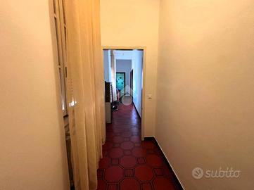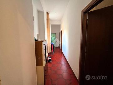 Il lungo corridoio accede alla zona notte in cui si trovano le due camere matrimoniali e il servizio con box doccia e attacco per la lavatrice.