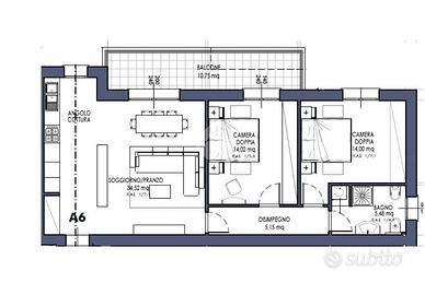 Il living di oltre 34 mq, ampio e luminoso, si apre su un terrazzino di 10 mq, perfetto per momenti di relax all'aperto. L'esposizione sud-est garantisce un'ottima illuminazione naturale durante tutto il giorno. Le due camere matrimoniali offrono spazio e sono ideali per famiglie o coppie.