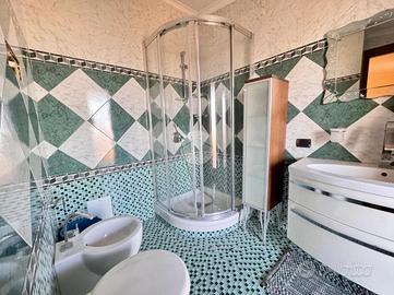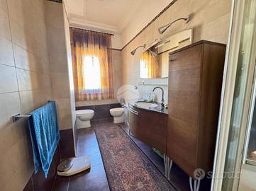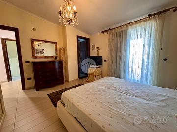 Proseguendo lungo il corridoio, si accede alla zona notte, composta da due ampie camere da letto matrimoniali. La camera patronale è dotata di un bagno privato con doccia, offrendo un tocco di esclusività e comfort. Anche il bagno patronale é servito di doccia. Entrambe le camere hanno accesso diretto a un secondo terrazzo a livello.