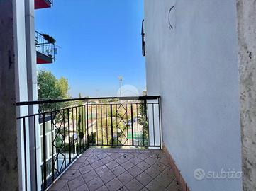 All'interno, l'appartamento accoglie con un ampio disimpegno che conduce a una cucina funzionale e un salone spazioso, perfetti per momenti di relax e convivialità. Il bagno e le due camere da letto completano la disposizione, offrendo spazi ben distribuiti e funzionali, adatti a soddisfare le esigenze di una famiglia.