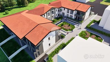 Le unità abitative sono inserite in un fabbricato a C che prevede due piani fuori terra e tetto a falde su cui verrà installato l'impianto fotovoltaico, con un'ampia corte interna che richiama il fascino delle corti lombarde e offre uno spazio di tranquillità e socializzazione.