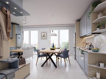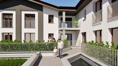 MARCALLO CON CASONE - "Curta Granda": La fiducia è una casa seria Nessuna provvigione sarà dovuta dalla parte acquirente! Sogni una casa moderna, comoda e immersa nel verde, ma vicina a tutti i servizi? Scopri 'Curta Granda', un'esclusiva iniziativa residenziale a Marcallo con Casone costruita da un'azienda storica nel settore composta di 16 unità immobiliari nella zona nord-est del paese. L'area è già urbanizzata, dotata di parcheggi e adiacente ad un supermercato di recente apertura. La vicinanza alle principali vie di comunicazione (SS Milano-Novara, Autostrada Mi-To, superstrada per Malpensa) garantisce spostamenti rapidi e senza stress con le scuole di ogni ordine e grado a portata di mano e la stazione FS e l'ospedale di Magenta a pochi minuti d'auto per spostamenti comodi. Le unità abitative sono inserite in un fabbricato a C che prevede due piani fuori terra e tetto a falde su cui verrà installato l'impianto fotovoltaico, con un'ampia corte interna che richiama il fascino delle corti lombarde e offre uno spazio di tranquillità e socializzazione. A pochi metri dal complesso, troverai l'accesso alla ciclopedonale che costeggia la TAV Mi-To, un vero e proprio polmone verde che ti collegherà alla vasta rete ciclabile del Parco del Ticino e dei Navigli. Goditi lunghe passeggiate o emozionanti gite in bicicletta, immerso nella bellezza della natura. Incantevole Trilocale con Terrazzo e Vista, un'Oasi di Comfort e Stile! ) Ti presentiamo un trilocale al primo ed ultimo piano, una soluzione abitativa pensata per chi desidera vivere con stile e comfort. Appena varchi la soglia, sarai accolto da una comoda zona giorno open-space, il cuore pulsante della casa, perfetta per serate in compagnia o momenti di puro relax. Da qui, un ampio terrazzo di circa 18 mq ti invita a godere di cene all'aperto e di una vista aperta, creando un'atmosfera unica e rilassante. L'immobile offre inoltre doppi servizi, garantendo massima praticità e privacy. La camera matrimoniale