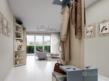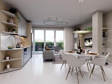 MARCALLO CON CASONE- "Curta Granda": La fiducia è una casa seria Nessuna provvigione sarà dovuta dalla parte acquirente! Sogni una casa moderna, comoda e immersa nel verde, ma vicina a tutti i servizi? Scopri 'Curta Granda', un'esclusiva iniziativa residenziale a Marcallo con Casone costruita da un'azienda storica nel settore composta di 16 unità immobiliari nella zona nord-est del paese. L'area è già urbanizzata, dotata di parcheggi e adiacente ad un supermercato di recente apertura. La vicinanza alle principali vie di comunicazione (SS Milano-Novara, Autostrada Mi-To, superstrada per Malpensa) garantisce spostamenti rapidi e senza stress con le scuole di ogni ordine e grado a portata di mano e la stazione FS e l'ospedale di Magenta a pochi minuti d'auto per spostamenti comodi. Le unità abitative sono inserite in un fabbricato a C che prevede due piani fuori terra e tetto a falde su cui verrà installato l'impianto fotovoltaico, con un'ampia corte interna che richiama il fascino delle corti lombarde e offre uno spazio di tranquillità e socializzazione. A pochi metri dal complesso, troverai l'accesso alla ciclopedonale che costeggia la TAV Mi-To, un vero e proprio polmone verde che ti collegherà alla vasta rete ciclabile del Parco del Ticino e dei Navigli. Goditi lunghe passeggiate o emozionanti gite in bicicletta, immerso nella bellezza della natura. Splendido Trilocale con Giardino Privato: Un'Oasi di Luce e Comfort! Ti presentiamo un trilocale caratterizzato da un'eccezionale doppia esposizione est-ovest che garantisce luminosità in ogni momento della giornata. Entra e lasciati conquistare dalla zona giorno open-space, un ambiente moderno e accogliente perfetto per condividere momenti speciali con famiglia e amici. Immagina cene conviviali e serate rilassanti, illuminate dai raggi del sole che filtrano dalle ampie vetrate. Il comfort è garantito dai doppi servizi, entrambi finestrati, un dettaglio prezioso che assicura ventilazione e luminosità. Le du