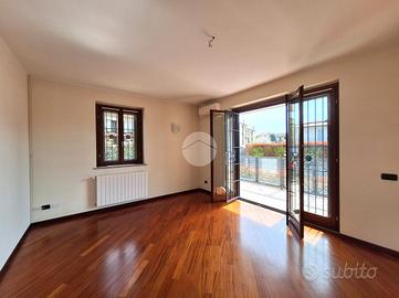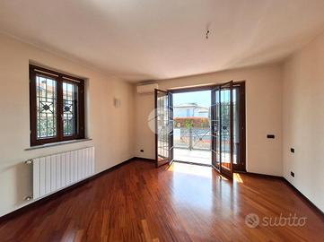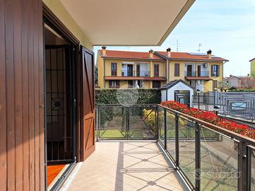 EVENTO OPEN-DAYS: 16, 17 E 18 APRILE DALLE ORE 9.00, PRENOTA IL TUO APPUNTAMENTO LIBERO SUBITO, APPARTAMENTO CON TAVERNA E GIARDINO Proponiamo in vendita una soluzione signorile inserita in un contesto residenziale composto da due palazzine di quattro unità ciascuna. Situata in posizione strategica a circa 350 mt dai principali servizi del centro e dal Parco Ghiotti, si distingue per l'elevato standard delle finiture e accessoriata con i seguenti elementi ad alto valore aggiunto compresi nel prezzo: inferriate su tutti i serramenti, quattro split aria condizionata, impianto d'allarme con sensore, impianto d'irrigazione automatico in giardino, l'arredo completo della cucina, mobile arredo bagno e lavanderia, due letti con materassi e armadio oltre cassettiera nella cameretta ed ulteriore armadio nell'altra camera. L'immobile si sviluppa su due livelli comunicanti tramite scala interna in muratura, offrendo una metratura versatile e ben distribuita: il piano terra è composto da zona living con affaccio sul terrazzo, bagno finestrato con box doccia e due camere da letto da cui si accede alla balconata. Al piano seminterrato troviamo l'ampia taverna finestrata con accesso autonomo tramite portoncino blindato. I locali sono ottimamente illuminati grazie alla presenza di finestre e due porte-finestre che garantiscono un collegamento diretto con il giardino, completano il piano due locali lavanderia finestrati e rifiniti. Il giardino di circa 200 mq si estende su due lati, è dotato di cancelletto pedonale privato e impianto di irrigazione automatizzato. Il box doppio di 25 mq è incluso nel prezzo. L'immobile è ideale per nuclei familiari che necessitano di una zona living secondaria indipendente (smart working o area conviviale) senza rinunciare alla privacy del piano superiore. L'ottimo stato di manutenzione delle finiture e la completezza degli arredi fissi rendono la soluzione 'chiavi in mano'.