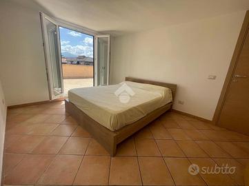 Lo spazio esterno è l'elemento distintivo di questa soluzione, caratterizzato da un ampio e profondo terrazzo panoramico e perimetrale. Ogni ambiente dell'appartamento gode di accesso diretto a questo terrazzo che si estende generosamente e offre numerose possibilità di utilizzo: dall'area relax con vista, alla zona pranzo all'aperto, fino alla comoda zona lavanderia, pensata per garantire funzionalità e praticità.