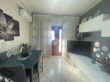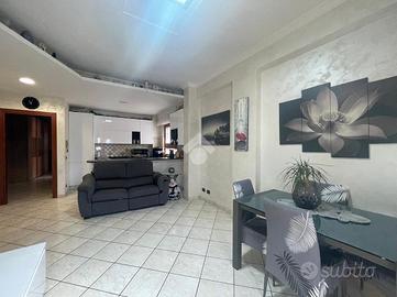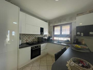 L' appartamento è composto da tre locali ben distribuiti e si compone di salone con angolo cottura, due bagni di cui uno dotato di vasca e l'altro con box doccia. Dal corridoio si giunge alla zona notte che comprende due camere matrimoniali, entrambe con accesso diretto al balcone, garantendo luminosità e continuità tra gli spazi. Possibilità di ricavare una terza cameretta.