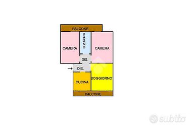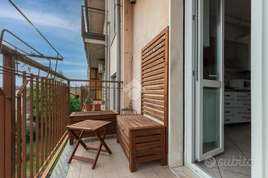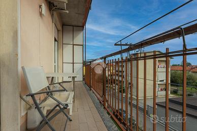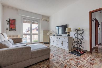 L'ingresso si apre sul disimpegno che distribuisce una cucina abitabile, a seguire il soggiorno con ben tre pareti arredabili; entrambi questi spazi hanno accesso al balcone di pertinenza. A seguire un altro disimpegno dove si aprono l'ampia camera matrimoniale, il bagno recentemente ristrutturato e la seconda camera dal letto. Anche le due camere hanno accesso diretto al balcone di pertinenza.