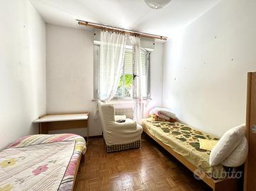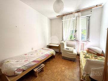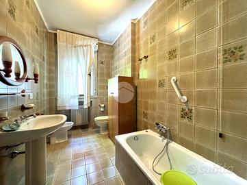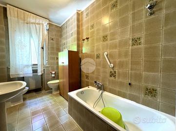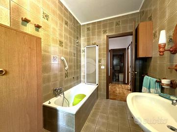 Attraverso il disimpegno si raggiunge la zona notte, composta da una camera matrimoniale, una camera doppia, un bagno finestrato con vasca ed un ulteriore wc/lavanderia.